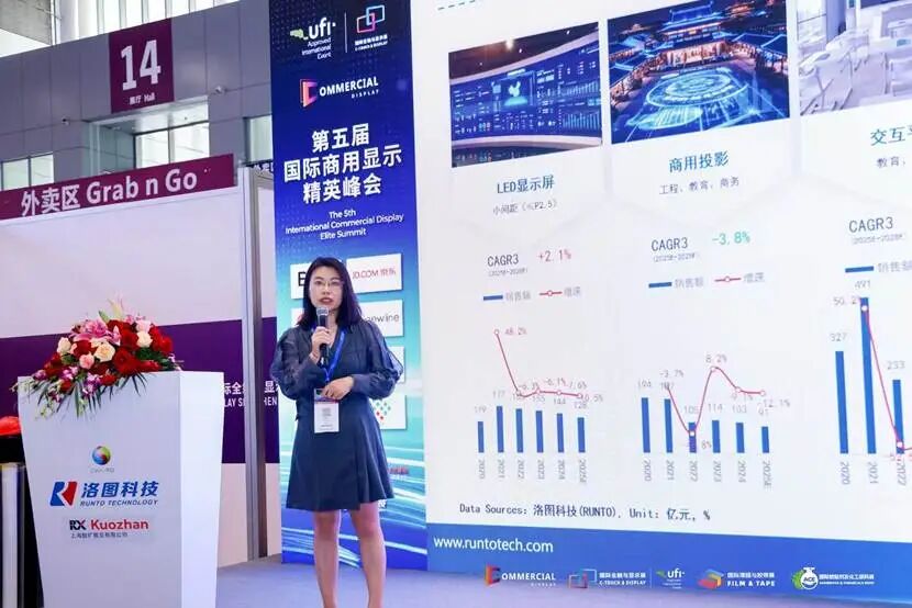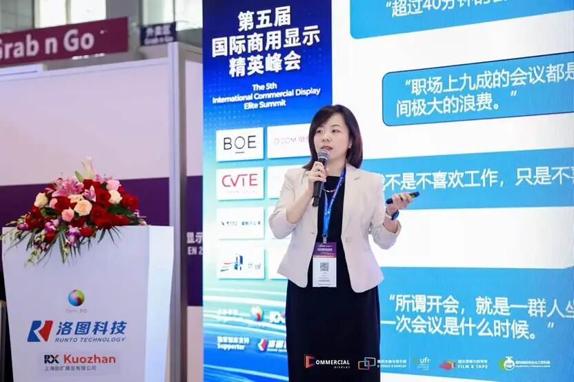 会议上半场,科技产业市调公司洛图科技(RUNTO)首席运营官王育红女士发表了《解析全球商用显示市场产品结构的替代循环与迭代动能》的主题演讲。报告指出,全球商用显示市场产品结构的替代循环与迭代动能,串联起了技术、场景与体验的升级脉络。