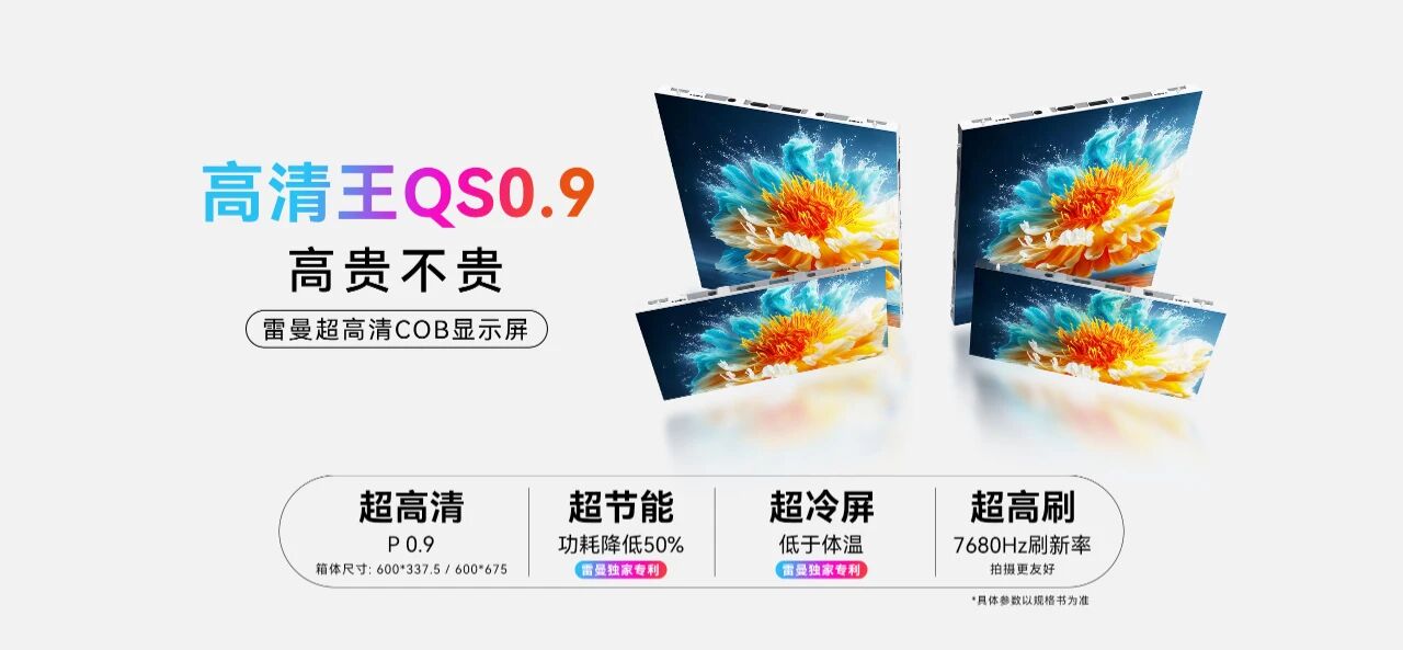 雷曼光电今天宣布,向国内、国际市场推出下一代基于PSE专利的高清王COB系列显示产品,主推型号为QS0.9。