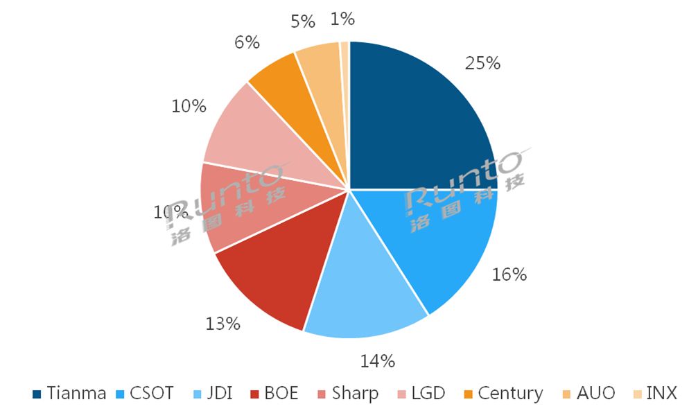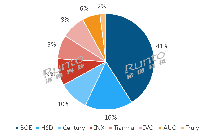 市场份额向头部面板厂集中,洛图科技(RUNTO)数据显示,三星、京东方以及天马的智能手机面板出货位列前三,且同比出货分别增长8.6%,21.6%,8.6%,市占由2018年48%提升至56%。市场震荡情况下,承受风险能力差的企业出货大幅下滑,JDI出货大幅下滑13.8%。2020年2月,JDI将从Ichigo资产管理公司获得1008亿日元(约合9.3亿美元)的救助资金,大股东也将易主为Ichigo。