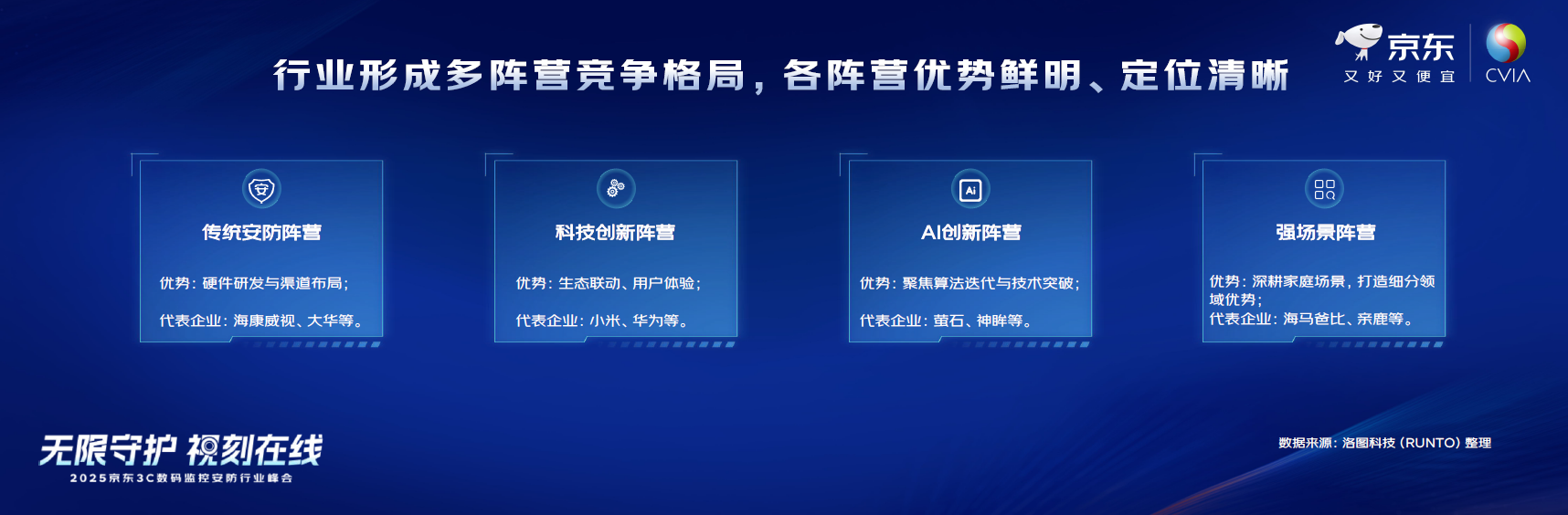 中国市场的品牌大致由四大核心阵营组成。以海康威视、大华为代表的传统安防企业,在硬件制造与规模生产方面具有优势。以小米、华为为代表的科技创新品牌,依托智能终端与物联网生态,实现设备深度融合。萤石和神眸等AI创新企业则注重算法研发,萤石推出了自研蓝海大模型,神眸开发了具备事件检索、互动聊天等功能的“AI小智”系统。此外,如海马爸比等品牌则精准定位在更细分的婴幼市场,以满足特定人群的需求。
