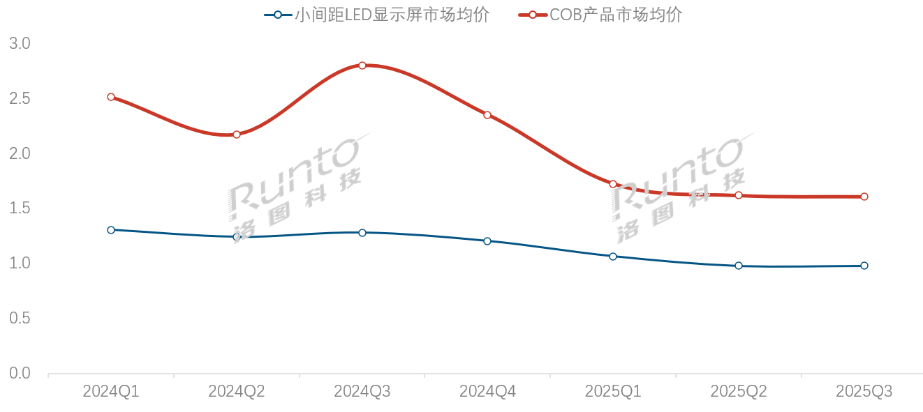2024Q1-2025Q3中国大陆小间距LED显示屏市场均价曲线