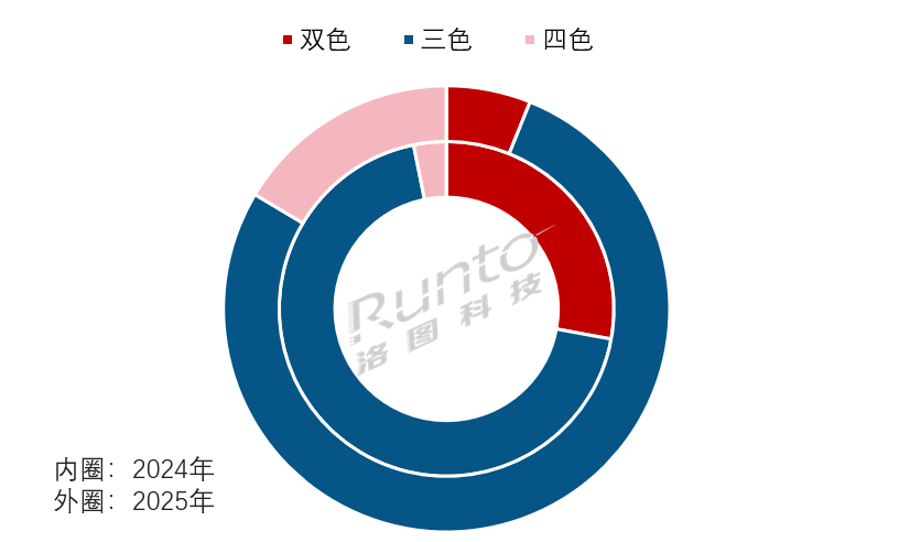产品端:在电子标签产品市场,三色价签是绝对主流,占据了77.5%的份额;而四色价签增速显著,根据洛图科技(RUNTO)数据显示,2025年,四色价签的出货表现突出,占比约为16.4%。比2024年增加了13.2个百分点。