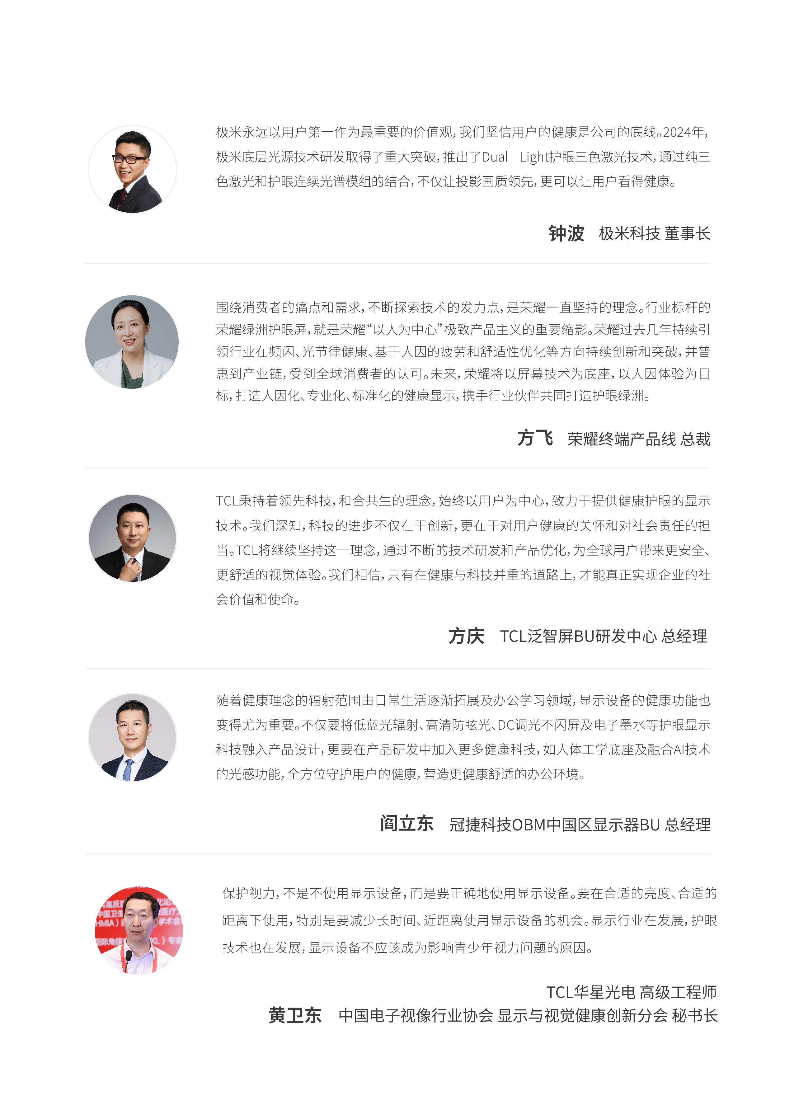 2024年6月6日全国护眼日,首届健康显示大会于北京隆重召开。眼科医学专家、显示行业专家、标准化专家、协会领导、消费电子产业链、科技评测机构等上下游代表及专业媒体齐聚一堂,共同探讨显示护眼技术的未来发展趋势,为守护大众视觉健康贡献更多力量。