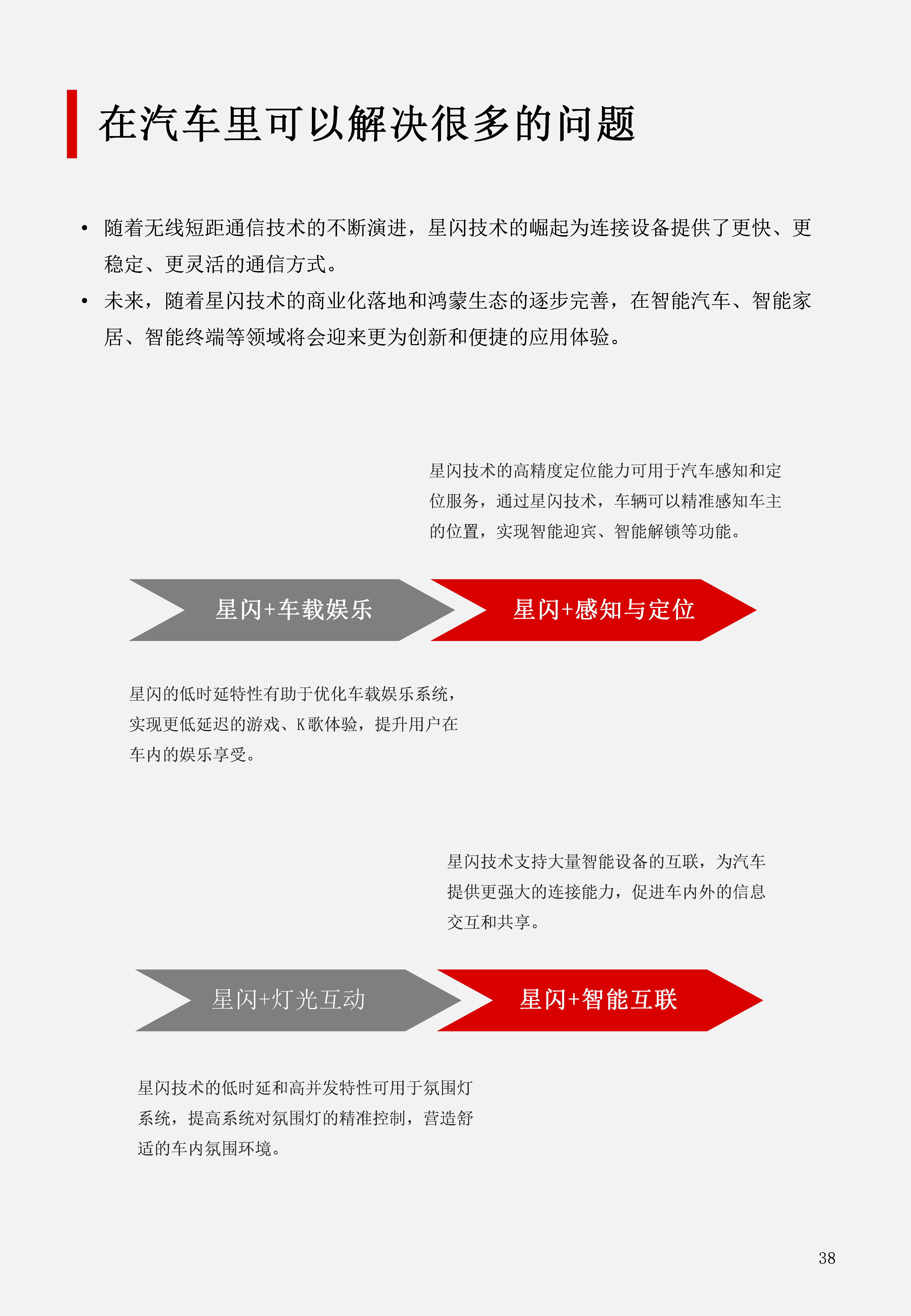 本白皮书的发布旨在全面介绍星闪技术的发展背景、技术特点、应用场景及产品,和未来展望,并期望和从业者共同见证这场新一代无线连接革命的辉煌篇章。