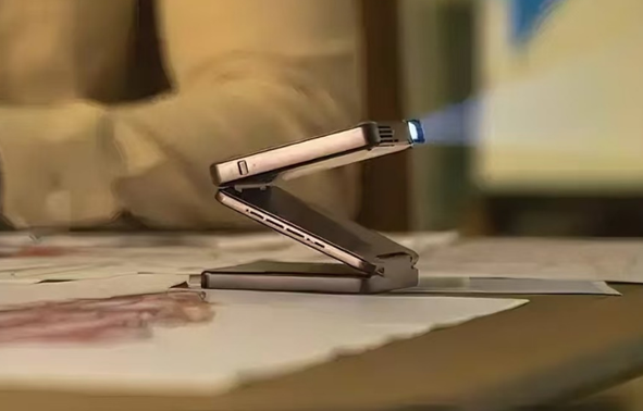 Aurzen展示了一款可放入口袋的三折投影仪ZIP,采用DLP技术,可以投射20-80英寸的画面;可使用名为CastPlay的HDMI加密狗进行无线传输,无需HDMI连接线。不过由于机身较小,亮度和分辨率较低,分别为100流明和720P分辨率。