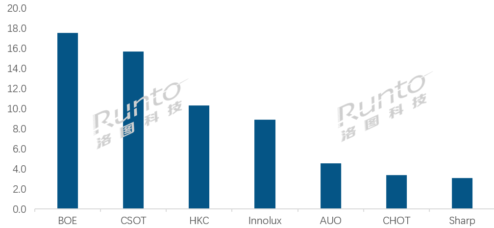 七厂商仅一家下跌;CSOT增幅行业第一;HKC重夺第三