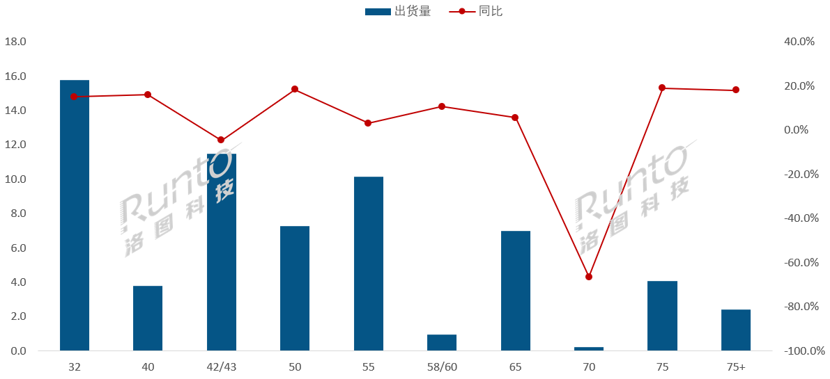 主力尺寸除43英寸外全面增长;泛百寸产品涨超四成