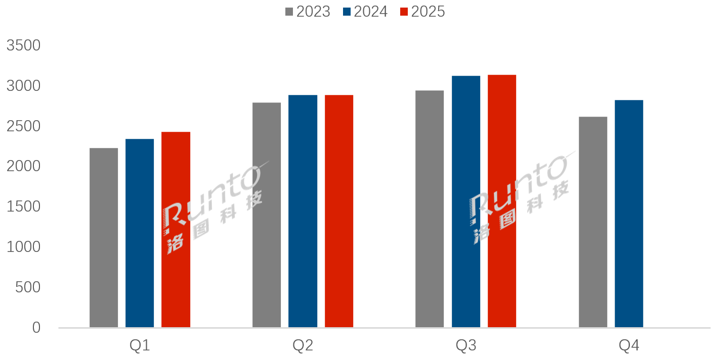 前三个季度累计来看,全球电视代工市场的出货总量为8450.7万台,比2024年同期小幅增长1.1%。进入第三季度,8月、9月连续两个月的同比下降,表明市场开始显著承压。