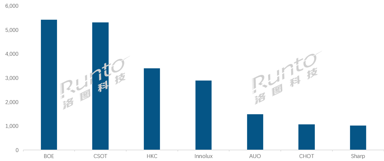 --日系Sharp(夏普)当月的市占率为5.0%,出货量约为100万片,同环比一增一降,幅度均在5%以内。