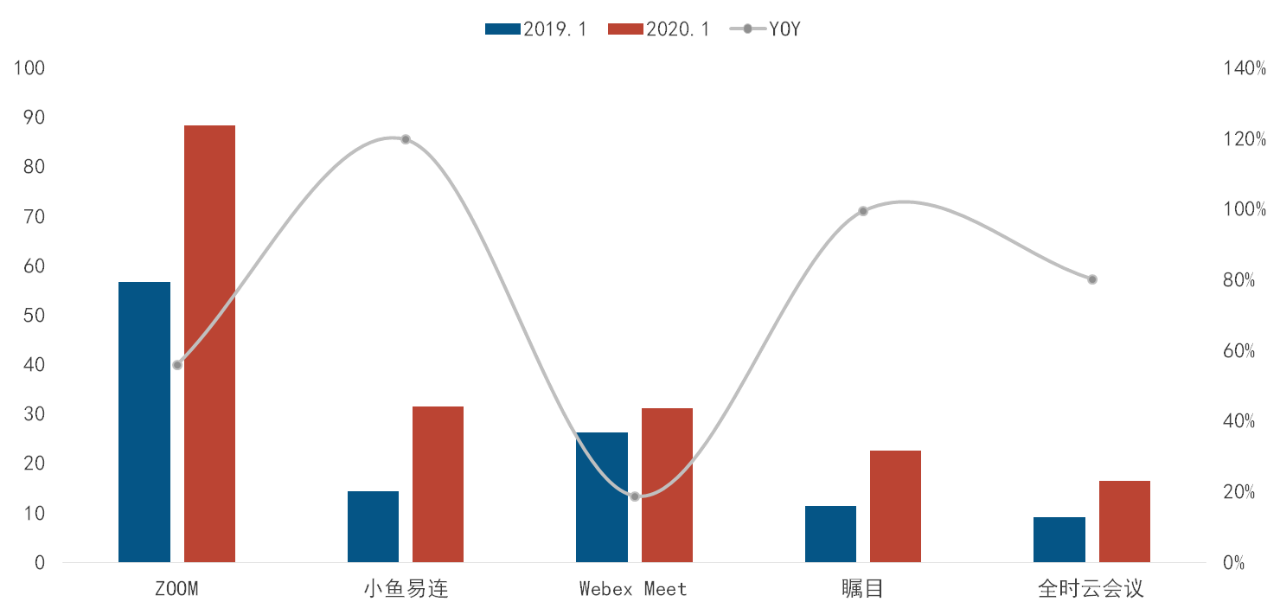 Different from the comprehensive collaboration software, the market concentration of audio and video conferencing is low, has not yet formed a head effect.During the outbreak, the market players all achieved a certain scale of user growth.According to the data of Mob research institute, in the monthly active scale of audio and video conferencing telecommuting enterprises in January 2020, zoom maintained the first place, and the small fish easily connected with the attention of the strong growth trend, with a year-on-year growth of more than 100%.